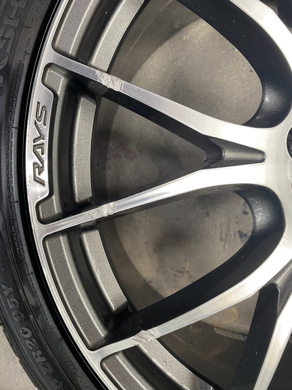 今回、ご紹介するのは、レイズホムラ ホイールのガリ傷リペアです。