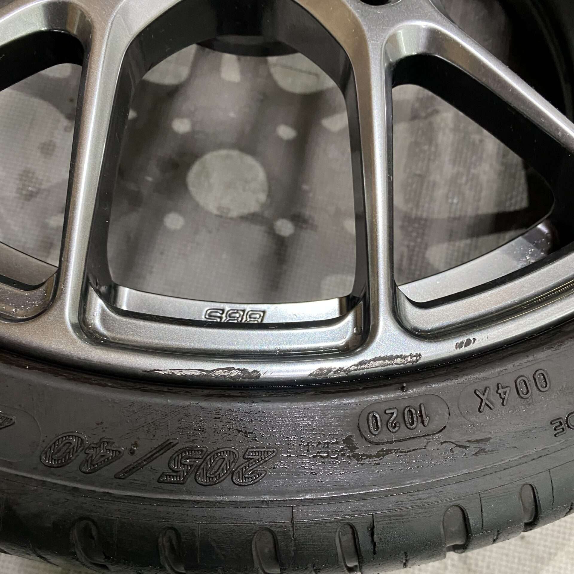 今回、ご紹介するのは、アバルト595に装着されている BBS IS701ホイールのガリ傷リペアです。