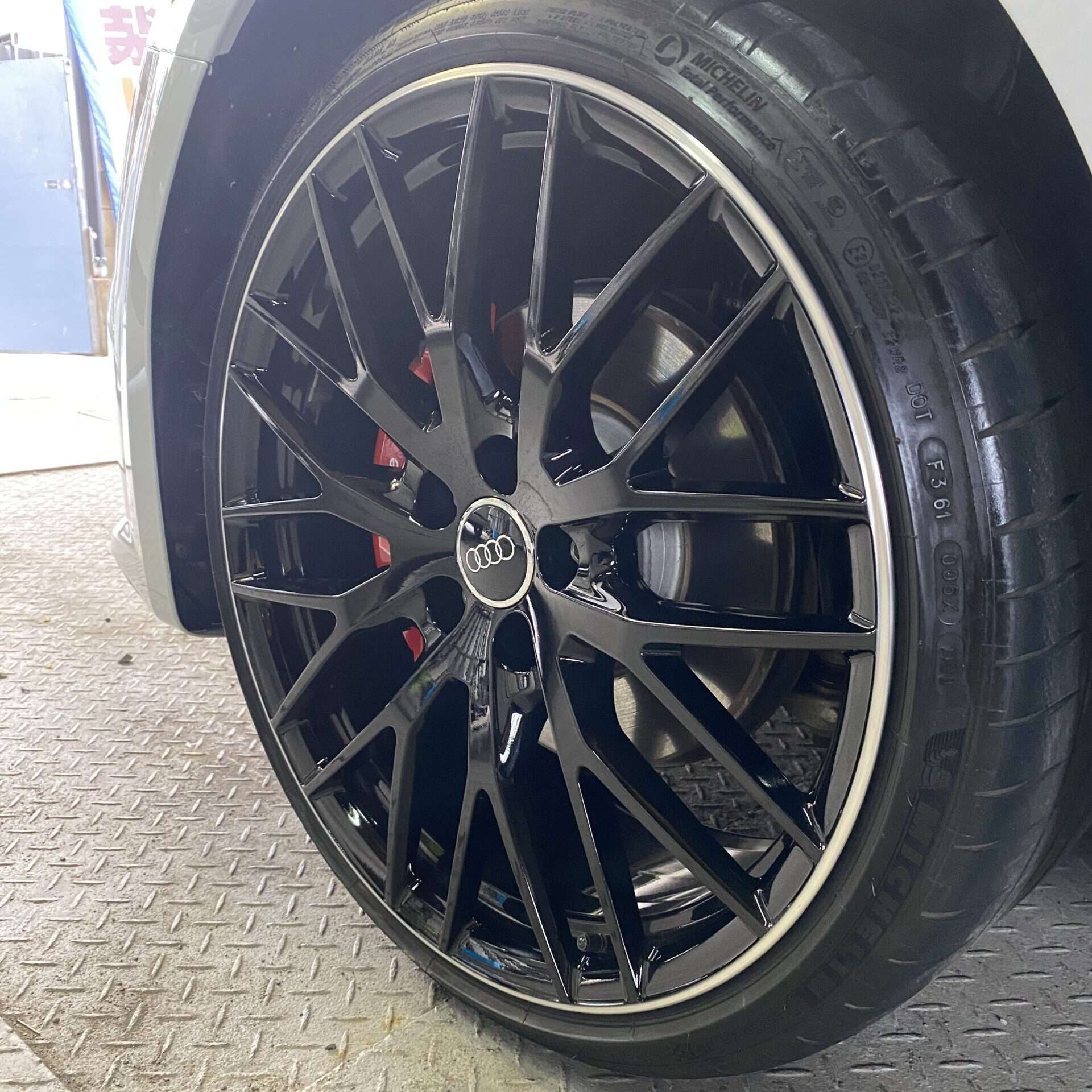 お客様は台湾の方で、ホイールリペアははじめてのようで、施工方法や仕上がりなど、いろいろと質問され・・・ ん~、ちょっと、仕上がりに厳しい方かな?(-_-;)