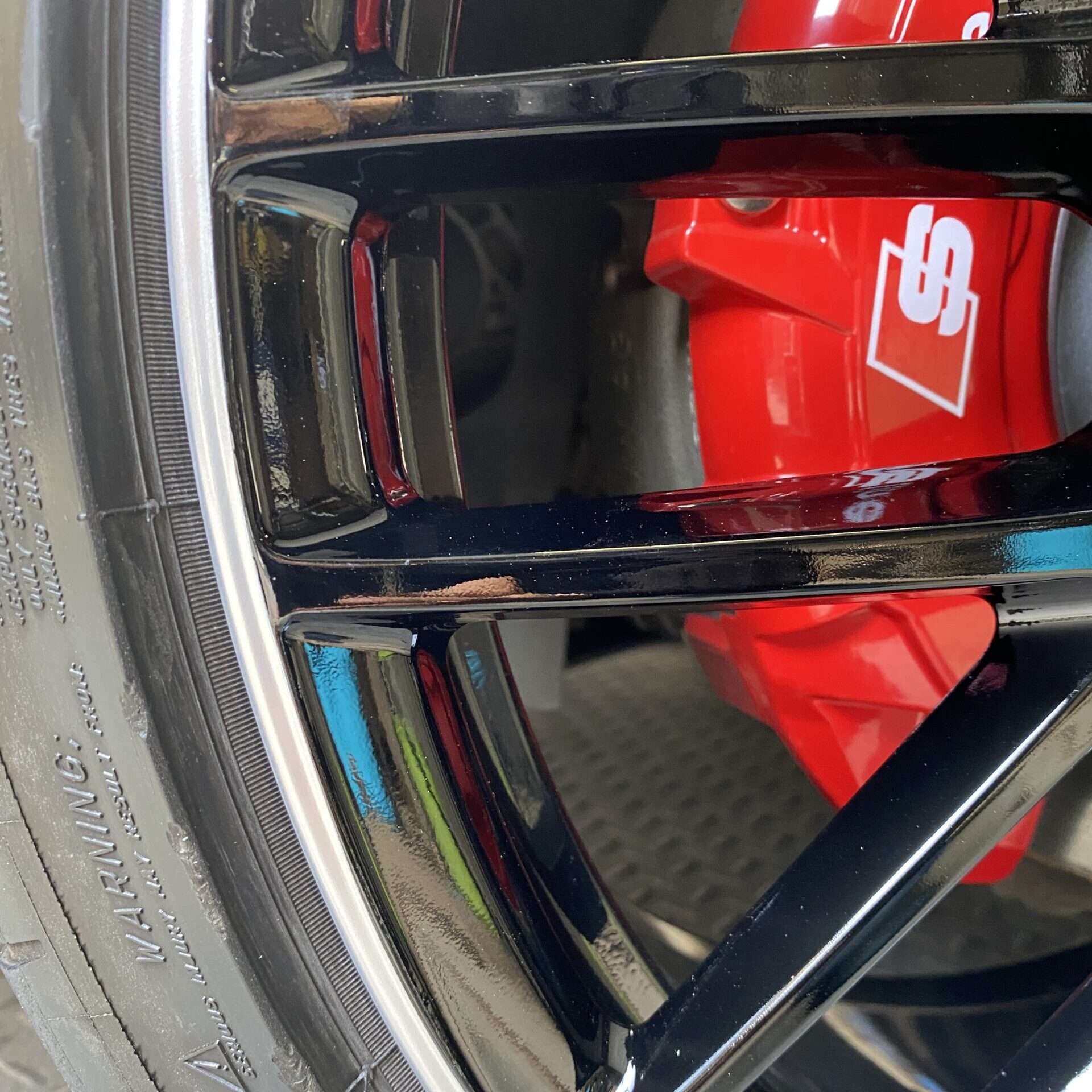さて、損傷状態ですが、リムの切削加工されている部分からスポークのブラック塗装されている部分に傷があり、塗り分け決定です。