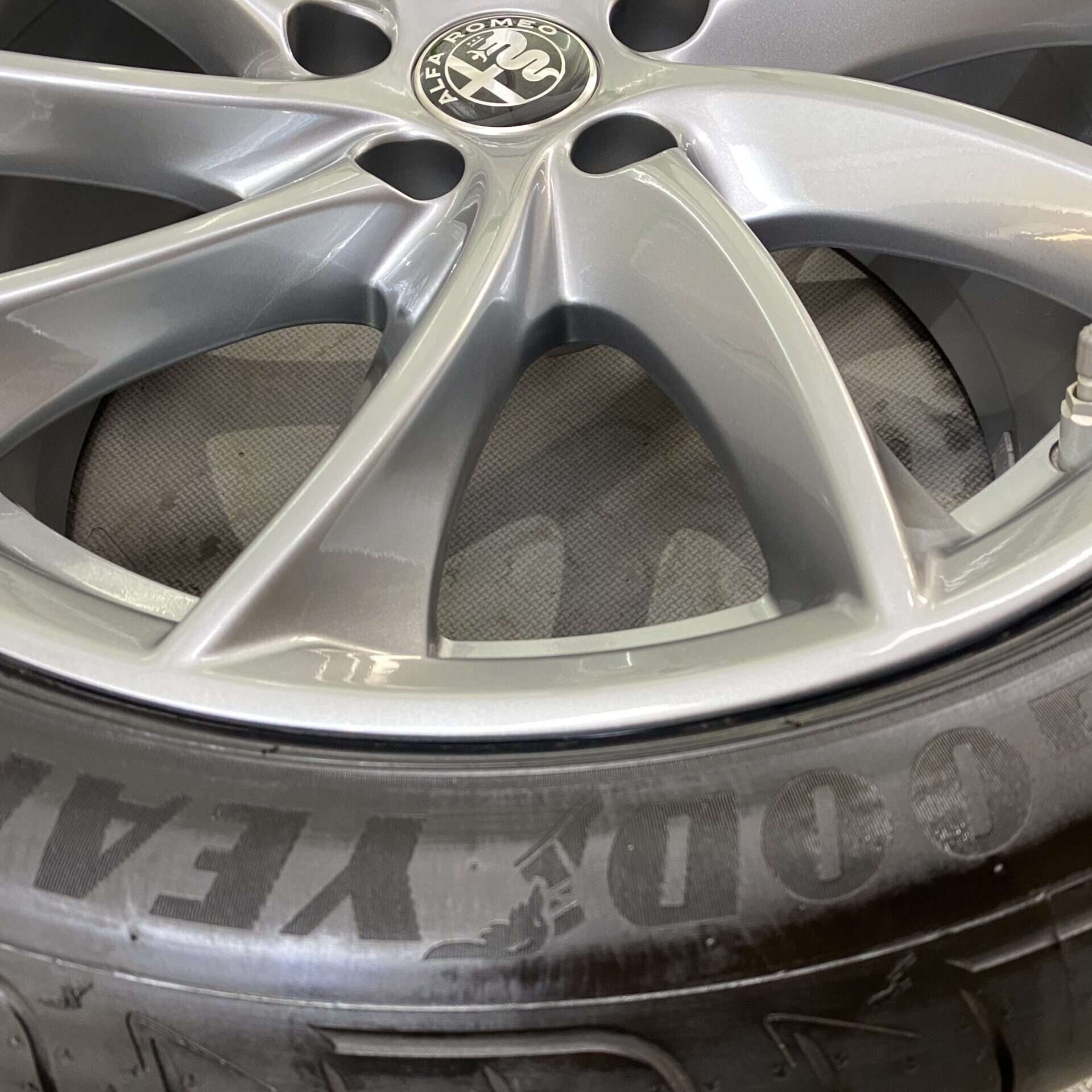 今回、ご紹介するのは、アルファロメオジュリア 純正ホイールのガリ傷リペアです。