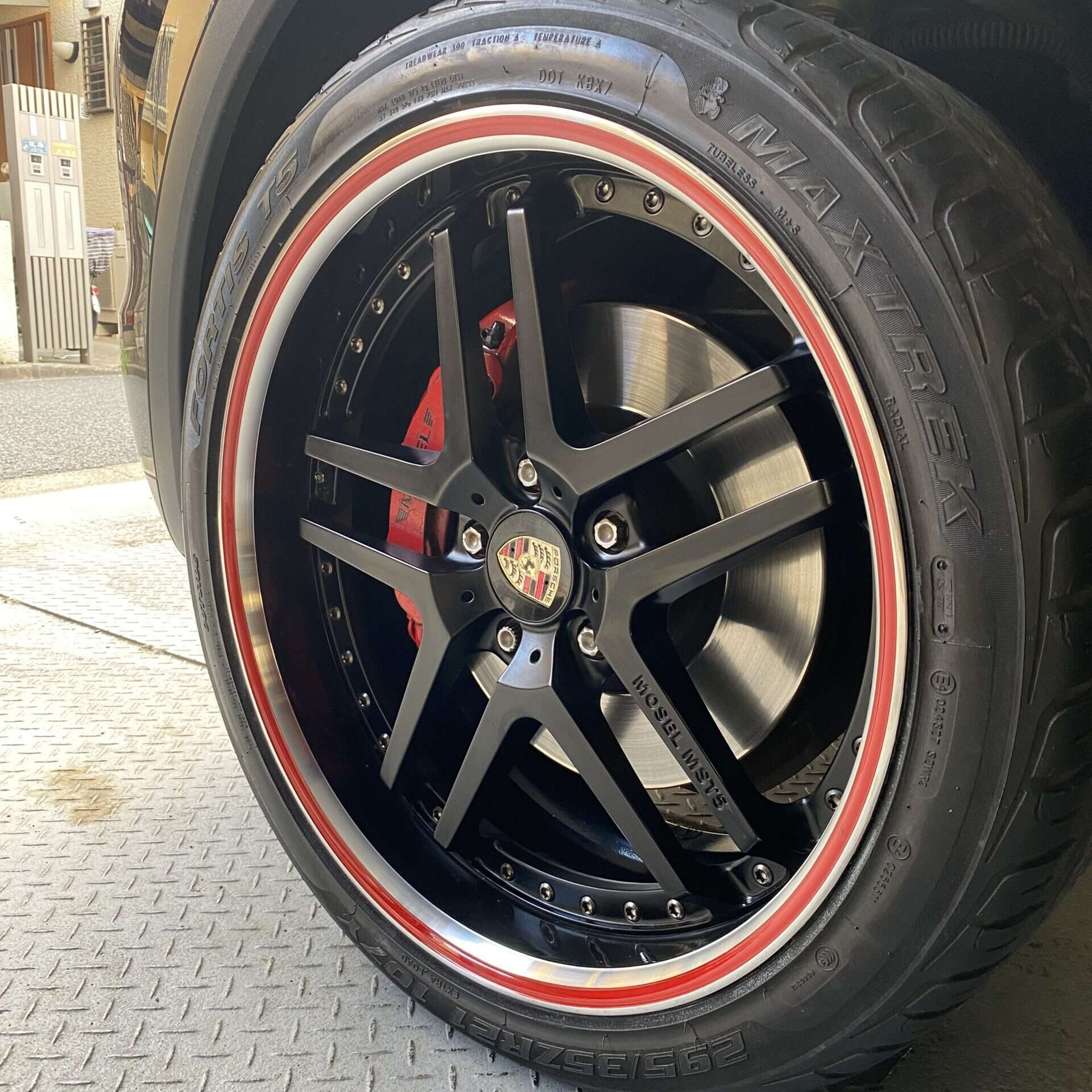 今回、ご紹介するのは、ポルシェ カイエン S Hybrid MOSELホイールのガリ傷リペアです。