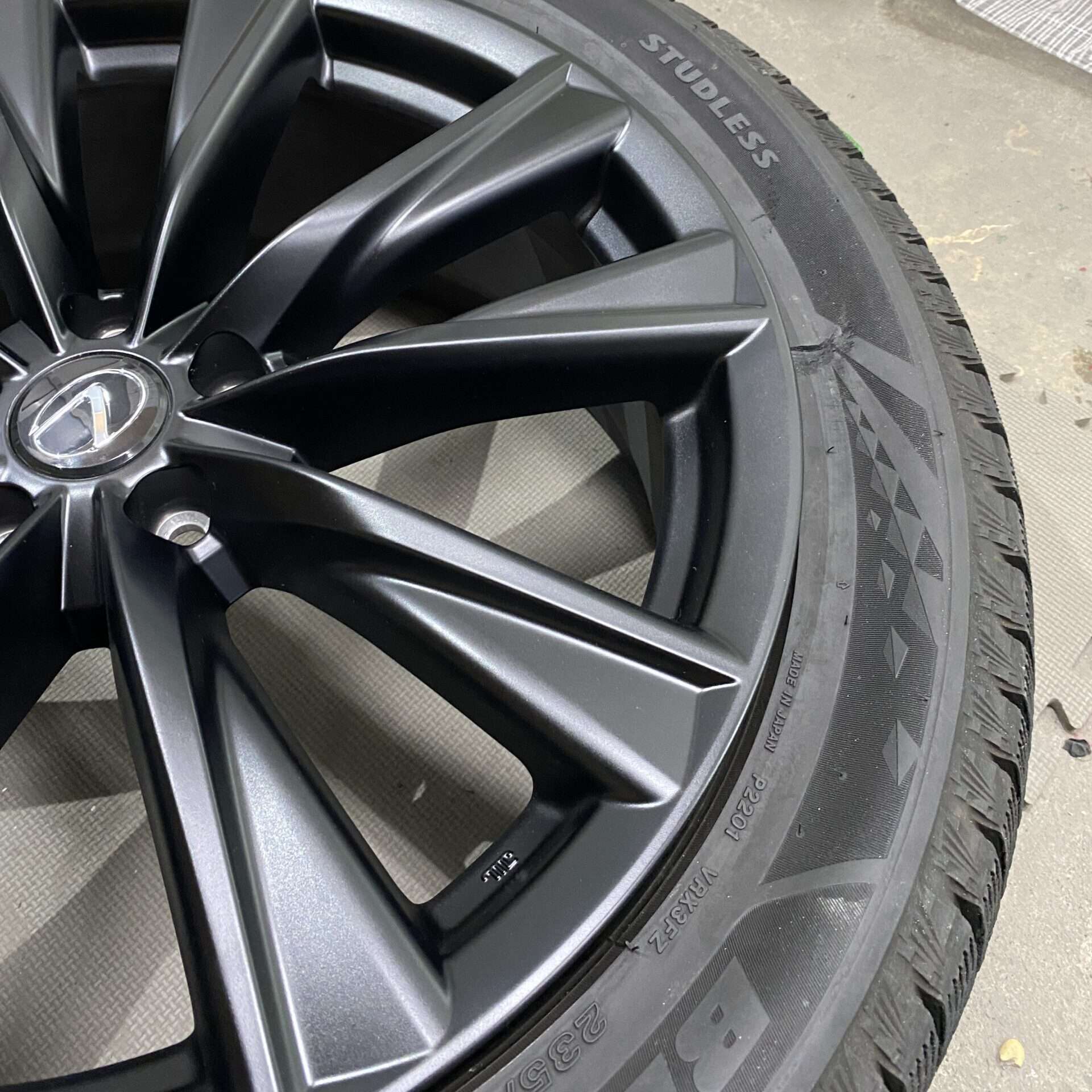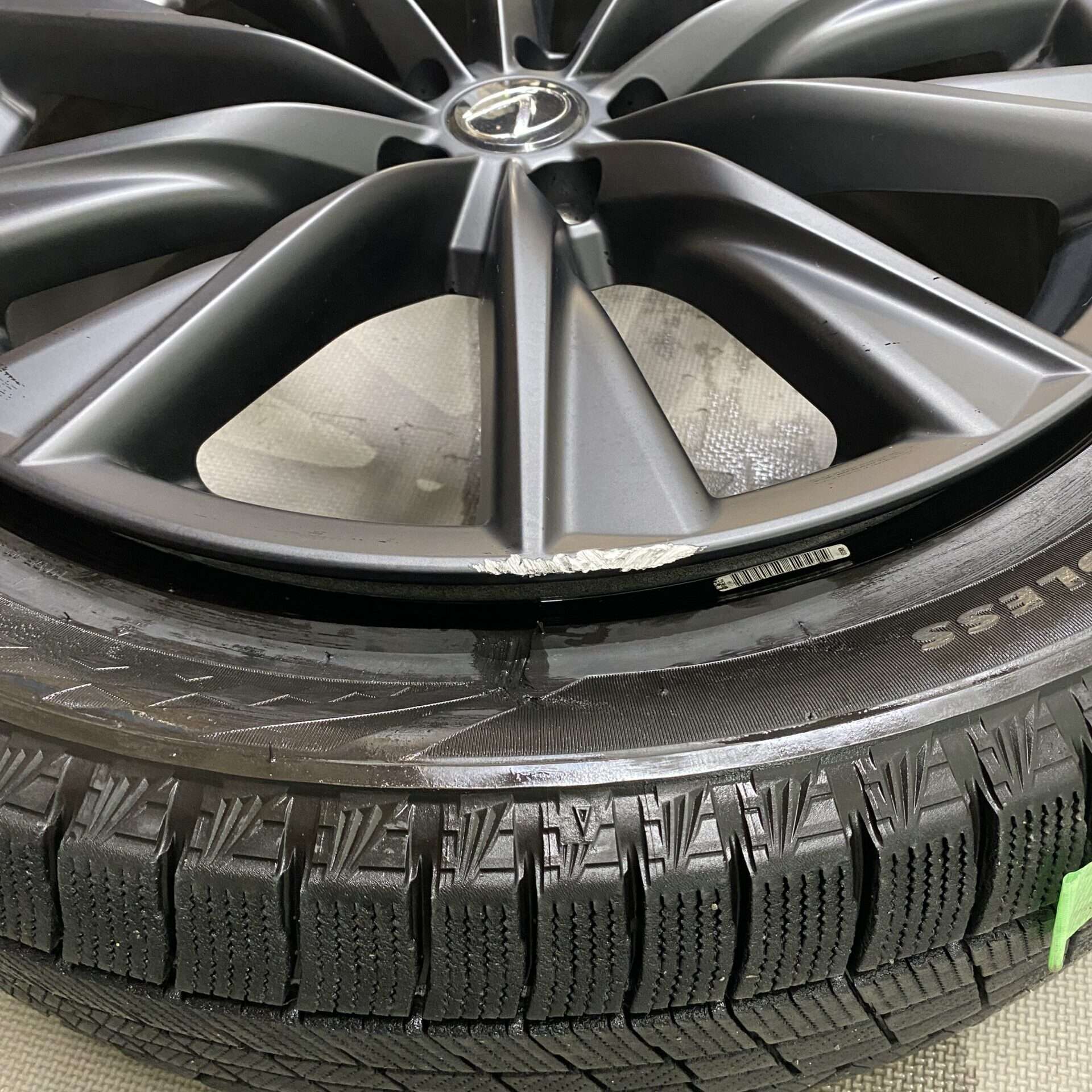 今回、ご紹介するのは、先月にご対応させていただきました、レクサスRX純正ホイールのガリ傷リペアです。今度は、スタッドレスタイヤ用んもホイールです。