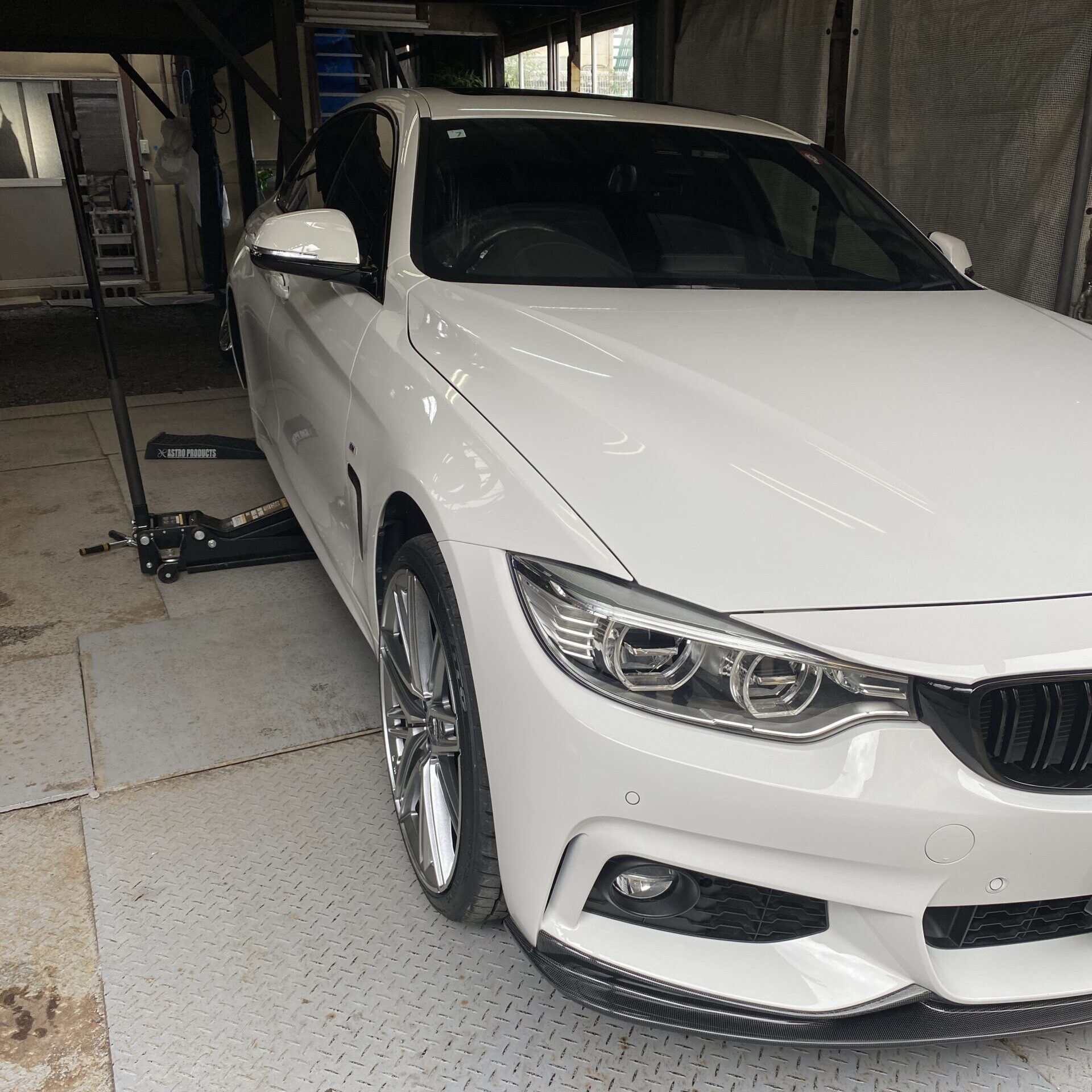 お車は、なかなかいい感じに車高ダウンされており、ジャッキが入るかな・・・と気になりましたが、