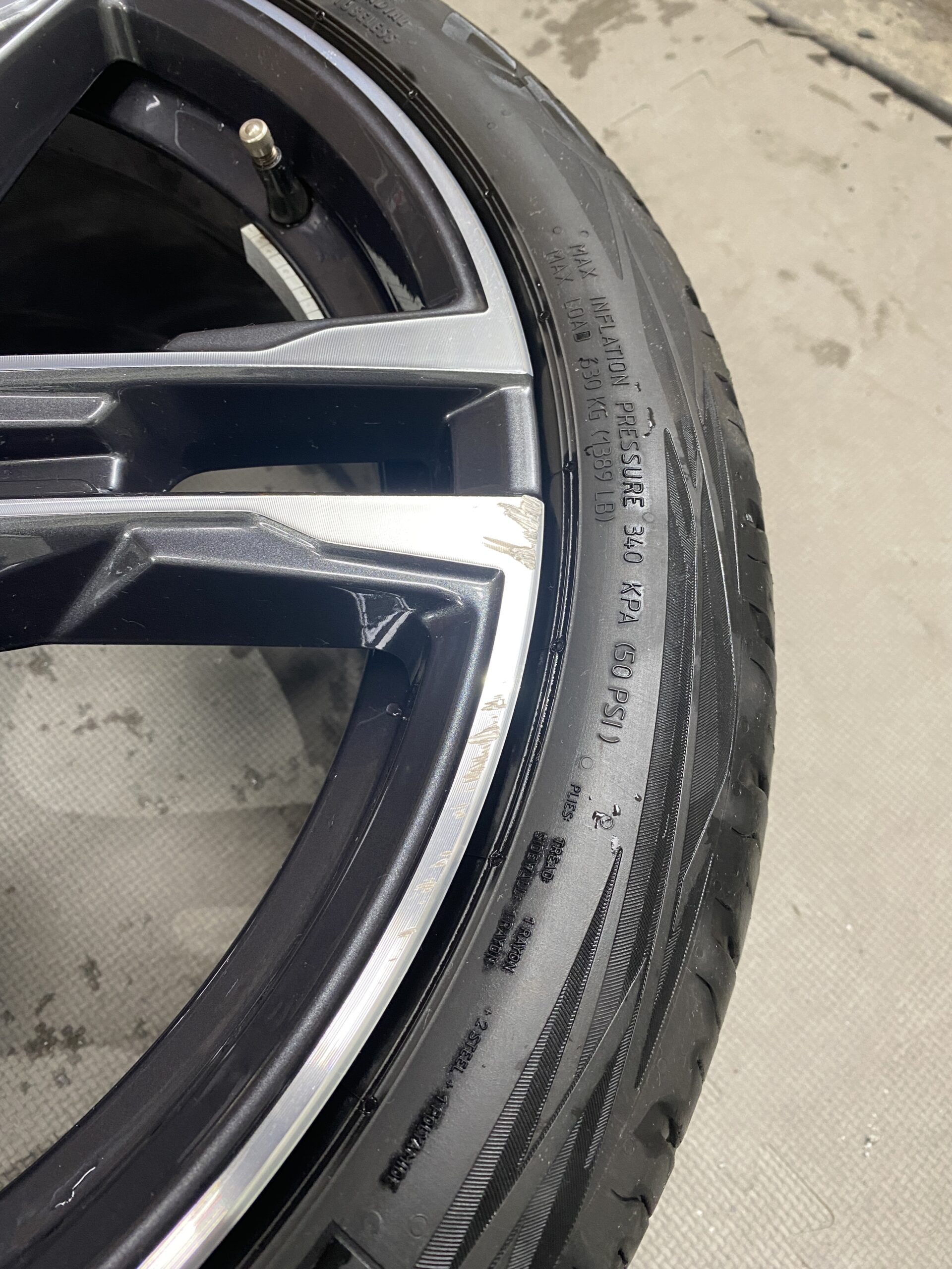 損傷状態:ご対応本数2本。1本はリムに3/4範囲にガリ傷、もう1本はリムに約10センチに傷